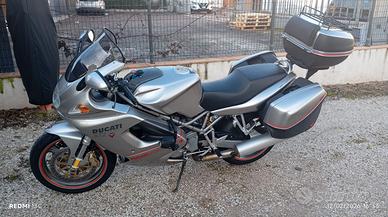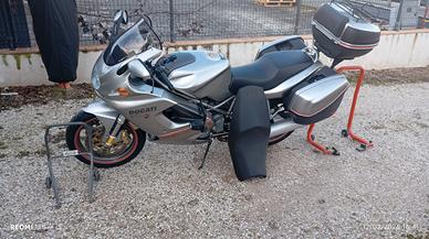 Vendo moto per inutilizzo come si vede dalle foto la moto ha pochi KM, appena tagliandata, sostituito cinghie, fatto collaudo, gommata nuova. La moto viene venduta completa di borsa serbatoio, valigie e borse laterali, bauletto con la capacità di contenere due caschi integrali tutto originale ducati nonfango, oltre alla sella di serie c'è la sella confort, cavalletto anteriore e posteriore. La moto è equipaggiata con antifurto, luci supplementari e doppie frecce. Unico proprietario. Il prezzo si può trattare!!
