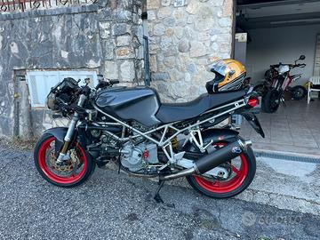 Ducati con motore 996, scarichi termignoni. Parafanghi in carbonio, pompa freni Brembo nuova. Appena tagliandata, cinghie e olio da 600km. Sprovvista di carene anteriori e cupolino.