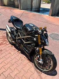 Vendo streetfighter 1098s con sospensioni Olins avanti e dietro e controllo di trazione di serie, cerchi marchesini,gomme Pirelli diablo rosso 4 con solo 2000 km. Super accessoriata, tutte le plastiche sostitute con parti in carbonio, parti rizoma serie oro tra cui manopole e contenitori liquidi, scarico termignoni completo in titanio con omologazione, frizione stm racing (solo la frizione sta 1200), leve freno e frizione ducati performance, attuatore frizione maggiorato, tubi in treccia, frecce e porta targa barracuda Disponibili tutte le parti originali. Appena fatto tagliando desmo e frizione,batteria nuova, corona e catena dia serie ore nuove, non c'è da fare niente. La moto è da vetrina,sempre tenuta da amatore e custodita in garage.