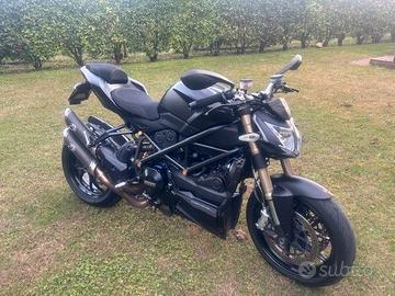 Vendo Ducati Streetfighter 848 del 2012 con 24800 km (la moto la sto usando quindi i km possono variare), moto perfetta in tutto, forcelle revisionate, tagliando completo di cinghie e gioco valvole effettuato a gennaio 2026, pneumatici nuovi appena sostituiti, scarichi termignoni completi dai collettori con filtro aria sportivo e centralina dedicata, disponibilità dei particolari in carbonio che si vedono in foto e degli scarichi originali, selle comfort e quelle originali di serie, vendo per passaggio ad altra tipologia.