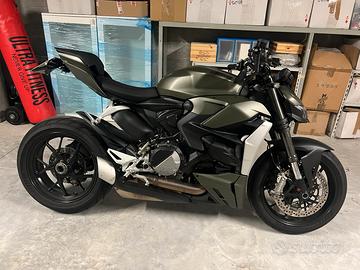 Vendo Ducati Streetfighter V2 colorazione Storm Green, acquistata a Luglio 2023 da concessionaria Ufficiale Ducati. La moto è come nuova, poco meno di 3.000km, garanzia ufficiale Ducati 2025,tagliando fatto in officina ufficiale Ducati, mai incidentata e senza alcun graffio. Utilizzata sempre e soltanto per giri cittadini, e parcheggiata in box auto, coperta nel periodo invernale. È stato aggiunto il porta targa regolabile della evotech, gli specchietti omologati per dimensione. Vendo per inutilizzo.