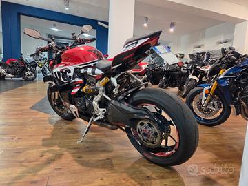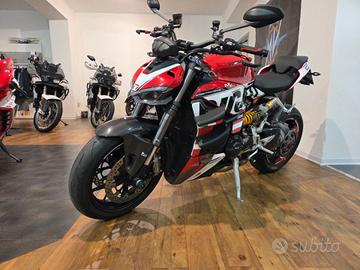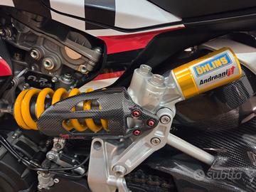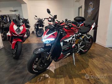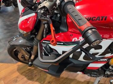 Ducati Streetfighter V2 07/2023 Km 28300 Garanzia Casa Madre fino a Luglio 2026 estendibile Tagliandi Eseguiti in Service Ducati Possibilità di finanziamenti di varie formule a tassi agevolati Possibilità di Consegna in tutta Italia Accessoriata di: Mono Ammortizzatore TTX Ohlins by Andreani Ammortizzatore di sterzo Ohlins Black Edition Parti in Carbonio: Parafanghi, Copriscarico, Protezione forcellone, protezione Mono, Copriblocchetto chiave, Copricarter, Cover Strumentazione Scarico Mivv Portatarga Evotech Paraleve Leve Barracuda Bulloneria in Ergal Tamponi Forcella Copricarter GB racing Grafica Ducati Racing Alette di Deportanza Griglie Pararadiatore Motore e trasmissione Tipo di motore V Alesaggio 100 mm Corsa 60.8 mm Potenza 153 hp Giri/min a potenza massima 10750 giri/min Coppia 101.4 Nm Coppia a giri/min 9000 giri/min Rapporto di compressione 12.5 Sistema di alimentazione Iniezione Gradi 90 Avviamento Elettrico Tipo di frizione Piastra multipla in bagno d'olio Trasmissione Catena Tipo di trasmissione Cambio di marcia Numero di marce 6 Cilindri 2 Tempi 4 tempi Valvole per cilindro 4 Distribuzione a valvole Desmodromico Raffreddamento liquido Spostamento 955 ccm Sospensione anteriore Sospensione anteriore Forcella telescopica rovesciata Tecnologia Pistone grande Marchio Showa Diametro 43 mm Escursione 120 mm Regolazione Compressione, Precarico, Rimbalzo Sospensione posteriore Sospensione Braccio oscillante singolo Ammortizzatore Monoshock Marchio Sachs Escursione 130 mm Regolazione Compressione, Precarico, Estensione Materiale Alluminio Châssis Telaio Alluminio Tipo di telaio Monoscocca Angolo inclinazione sterzo 66 gradi Avanzamento 94 mm Freni anteriori Tipologia Doppio disco Diametro 320 mm Pistone Quattro pistoni Attacco dell'ammortizzatore Semi-Schwi