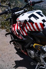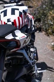 Vendo Ducati Streetfighter V2 con scarico completo Akrapovic, Mappa Sportiva Racing EVO e Filtro Sportivo. Il colore originale della moto é la versione verde Lamborghini (Storm Green) ed é stata wrappata con grafica dedicata per protezione e per estetica (c'è la possibilità di rimuovere la grafica in qualsiasi momento). Ho diversi accessori oltre lo scarico: Portatarga corto in carbonio originale Performance, Kit Ali Originali Performance, Monoposto, DB Killer Akrapovic, Mantenitore di Carica originale e Cavalletti originali Anteriori e Posteriori. Tagliandata solo ed esclusivamente in Concessionario, tutto documentabile. Estensione di garanzia effettuata fino al 2027. Non vendo lo scarico a parte.