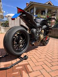 Streetfighter V4 S 2022 Nero Opaco Tutta originale. A parte il para serbatoio Ducati performance del costo di 315 euro che lascio su. E la griglia radiatore DP Kit passeggero presente, ovviamente. Tagliandi a corredo come da descrizione libretto uso e manutenzione in ordine documentabili. Richiamo mozzo appena eseguito. Le parti rosse anteriori son verniciate, il codone invece è un semplice adesivo.
