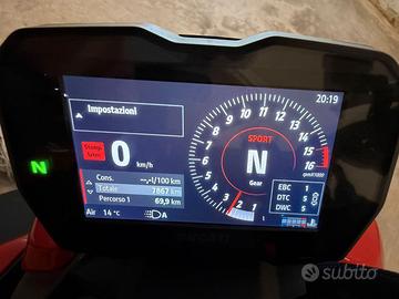 Moto 100% originale di fabbrica: nessun pezzo sostituito (tutto primo montaggio Ducati – scarico originale, sospensioni Öhlins Smart EC originali, freni Brembo Stylema originali, pneumatici in ottimo stato originali o quasi, catena/coronella stock). Configurazione full S senza modifiche aftermarket.