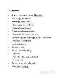 complessivo di oltre 14.000€ tra cui cerchi in carbonio, kit frizione a