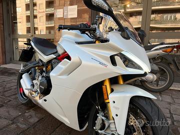 Moto Ducati supersport 950 S (allestimento top di gamma) maggio 2022 bianco perla con pochissimi km. Sempre tenuta in garage. Tagliandata sempre Ducati (necessita di tagliando per il 2026). Qualsiasi prova. Regalo casco Ducati (tricolore rosso, bianco, nero usato taglia M). Regalo caricabatteria per mantenere livello della batteria sempre ottimale.