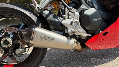 La moto monta scarico MIVV Delta Race omologato con collettore decatalizzatore fatto ad