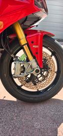 Vendo, causa inutilizzo, Ducati Supersport S 2017 con sospensioni Öhlins, tre mappe motore (sport, touring e urban) e cambio quickshift up/down. Secondo proprietario, acquistata da concessionaria multimarca ad Agosto 2021 a 28mila km. A 30mila km effettuato il previsto tagliando Desmo, con sostituzione di cinghie distribuzione, tenditori e cuscinetti; moto sempre tenuta in garage su cavalletto monobraccio posteriore, mai in pista, pneumatici Pirelli Diablo Supercorsa in ottimo stato. La moto ha portatarga ridotto, codino monoposto Ducati rimovibile, cupolino Touring, luci Led bianche per anabbaglianti/abbaglianti e pedaline passeggero. Cedo con la moto: Cavalletto monobraccio posteriore; Portatarga originale; Mantenitore di carica per la batteria; Kit pulizia e ingrassaggio catena; Adesivi per i cerchi. Vendo a 7.200 euro trattabili, astenersi affaristi e/o perditempo. No permute e/o scambi. Questa versione S monta sospensioni Öhlins completamente regolabili (la forcella è a steli rovesciati da 48 mm, il mono ha il serbatoio integrato), mentre l’impianto frenante è tutto Brembo. La ricca dotazione elettronica comprende l’ABS (regolabile o disinseribile), tre riding mode e il controllo di trazione DTC selezionabile su otto diversi livelli di intervento.