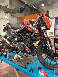 Vendo Duke 125 2015 Ottime condizioni Descrizione: Vendo duke 125 cc, anno 2015 , con 46000 km segnati a 30000 km è stato rifatto il motore (cambio , cilindro con tutti i lavori per rigenerare il motore , ovviamente taratura valvole) monta pistone e cilindro 160 atena La moto è in ottime condizioni, sempre tenuta con cura e utilizzata principalmente per casa-scuola / giri weekend. Manutenzione: Tagliandi regolari ogni 4000km Ultimo tagliando effettuato a 46000km 31 gennaio 2026 Gomme Bridgestone in ottime condizioni, pompa del freno posteriore cambiata circa 8000km fa , cilindro rifatto 16000km fa, impianto cambio rifatto 16000km fa. Dotazioni / pezzi compresi tamponi , manopole, leve freni e cambio e frizione , codino corto, impianto di scarico non originale e non omologato, grafiche con alcuni sticker per alcuni graffi. (dovuti a una scivolata 3 anni fa a bassa velocità che l'hanno leggermente graffiata ma non è visibile grazie a grafiche/ sticker) ancora in possesso dello scarico originale, cilindro originale , e pistone originale ,e codino originale Documenti: Bollo in regola Revisione Moto pronta al passaggio di proprietà Prezzo: 2000 Visionabile a Riccione Contattami per avere dettagli o per qualsiasi domanda o richiesta di foto