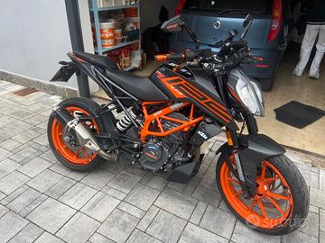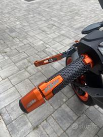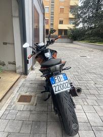 La moto presenta qualche grattata sul lato destro, motivo caduta alle prime armi. Non si notano. Per io resto la moro è perfetta. Monta: leva freno anteriore e frizione aftermarket regolabili nel raggio di presa in ergal, manopole cambiate abbinate con leve, tamponi manubrio, spechhietti personalizzati (scritta duke) e porta targa corto (fornisco anche originale). La moto ha 7000 km, tagliandata 2 volte in casa madre (prossumo tagliando consigliato tra 5000 km)
