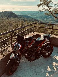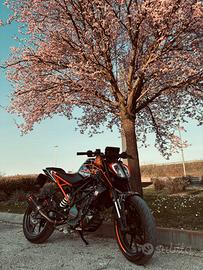 vendo ktm duke 125 in buone condizioni generali la moto monta: -scarico akrapovic in carbonio -decatalizzatore mivv -motore sostituito, attualmente con circa 20.000 km. -grafiche personalizzate -portatarga pieghevole difetti (per correttezza): -scarico abbozzato -serbatoio con piccola ammaccatura -alcuni graffi sul lato sinistro dovuti a una caduta cedo il catalizzatore originale e gli specchietti che attualmente non monta la moto è perfettamente funzionante e pronta all’uso. prezzo trattabile. per info o altre foto contattatemi in privato.