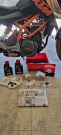 Per quanto riguarda la meccanica, la moto è stata curata maniacalmente. In data 31 Agosto è stato effettuato il tagliando completo della moto, quindi sostituito filtro olio, filtro aria e filtro benzina, entrambe le due retine presenti nel circuito dell'olio, o-ring nuovo nel tappo del filtro olio, tappo di scarico nuovo, o-ring tappo di carico olio nuovo, tutto preso alla ktm tranne filtro olio e aria (marca MEIWA, una marca da primo impianto), olio Motul 15w50 7100.