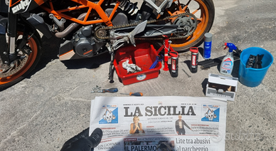 Nella stessa data è stata effettuata una pulizia e lubrificazione completa della catena utilizzando solo prodotti motul (C1 e C2), pulizia delle plastiche che la proteggono e lubrificazione degli ingranaggi.