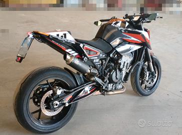Vendo Ktm Duke 790 Potenza: 105 CV, anno 2018 per passaggio a super sportiva. La moto è in ottime condizioni ed è accessoriata: -Scarico Arrow con libretto di omologazione -Pompa freno radiale Braking -Specchietti manubrio -Cambio elettronico Quickshifter (up & down) -4 mappe motore selezionabili: Street - Rain - Sport - Race +Mappa TRACK sbloccata (permette di disattivare tutti i controlli) -Anti-Wheelie (anti-impennata) -Grafiche Ktm personalizzate -Fari e frecce a led -Porta targa -Tagliando filtro e cambio olio appena fatto + gomme nuove Pirelli Diablo supercorsa v3 Sc2. La moto è pronta all'uso non necessita di nessun lavoro da fare, al momento è in versione monoposto, lascio tutti i pezzi originali incluso le pedane posteriori, telaietto e sellino per il passeggero. Per altre info o foto contattatemi anche tramite whatsapp al 3471738376. Antonio