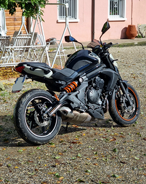 Vendo Kawasaki ER-6n guidabile con patente A2 in quanto depotenziata (a libretto soltanto) con possibilità da parte mia di riportarla a 35kw senza costi aggiuntivi. Vendo per passaggio ad A3. La moto ha 32 000km è in ottime condizioni, tenuta sempre in garage con cavalletti, manutenzione regolare, bollo pagato e revisione appena fatta; viene venduta come da foto, e regalo gli accessori attualmente non montati, insieme ad entrambi i cavalletti. Di seguito accessori:
