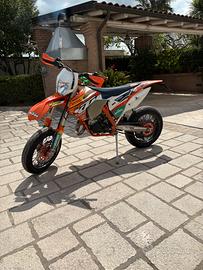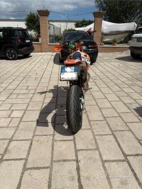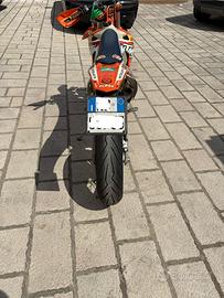 Blocco revisionato con pistone nuovo (10H all'attivo) e kit motard con sposta pinza e disco da 320 ant + corona 52 denti. Vendo anche kit motard originale KTM con gomme in ottimo stato.