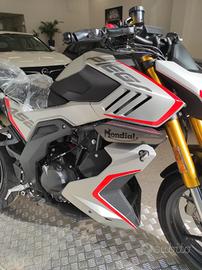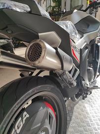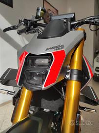 Mono braccio posteriore con para cerchio , corona con parastrappi , doppio scarico in acciaio , Pirelli GT di serie , Illuminazione Full Led , alette aerodinamiche .