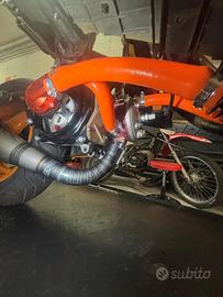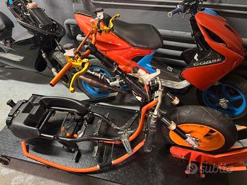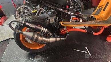 lo scooter ha sole 24 ore motore, sempre utilizato in maniera maniacale e assemblato per pura passione, vendo per passaggio a cilindrata superiore. lo scooter ha i seguenti pezzi - top viola con tetsa scomponibile - albero motore athena racing spalle piene - accenzione a rotore interno con anticipo regolabile inpostato a 2,2 gradi dall punto morto superiore - variatore malossi multivar 2000 - cinghia top performance - campana mallossi fly - frizione polini 3g con 24 ore = 80% - copri carter aperto sia lato accenzione sia lato trasmissione - pompa dell' acqua maggiorata - tubi siliconici con diametro maggiore per contenere più liquido - dissippatore di calore - pompe radiali sia ant. sia post. - tubi in treccia stage 6 - disco flottante stage 6 con adattamento sul mozzo per lo spazzio dei nipli - alza pacco one - copri sede del motorino stage 6 - comando aria polini - manubrio str8 - impianto eletrico semplificato - termometro koso