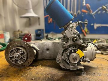 selettra team2, marmitta trexhouse , maxi kit tpr 86, rapporti primari 13/44, over range malossi, frizione 3g polini, campana stage 433g, compri rapporti polini,pacco lamellare vl14, colettore polini, 28 vhst dell'orto, filtro malossi ( non monta il diritto per un cambio di scelta qundi ha ancora il sotto sella), strumentazione malossi e radiatori maggiorati.