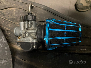 70cc Polini base, gabbia rulli rinforzata e albero a spalle piene Malossi, carburatore phbg 19 senza miscelatore, lamelle in carbonio Polini, trasmissione Malossi (variatore e frizione) settaggio della trasmissione perfetto parte a cannone e non scende mai di giri fino a manetta mi sono divertito tantissimo (110kmh da GPS), marmitta stage 6 pro replica ormai sono 2 3 anni che e fermo, non è per gente che ha paura di metterci un po' le mani, io posso anche sistemare qualcosa se c'è bisogno ci accordiamo, ha anche dei freni spaziali per uno scooter fa gli stoppie