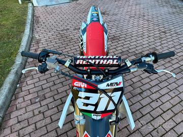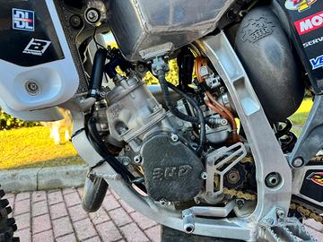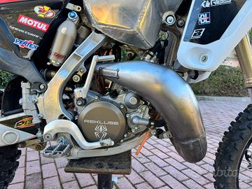 Un sacco di power parts come Frizione idraulica Rekluse, scarico completo Scalvini, serbatoio in alluminio, piastre Rocs, forcelle con tarature speciali, motore preparato a ? , ecc