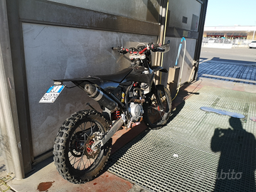Monta gomme Mitas ancora a un 70%, pasticche ancora buone, presenta qualche graffio sulle plastiche e lievi segni di ruggine. Dispongo di qualche pezzo originale(scarico, plastiche, tachimetro, ecc).