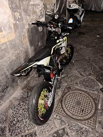 Moto perfetta, Tagliandata regolarmente ogni 1000 km MODIFICHE : motore 75 top viola ancora in rodaggio solo un pieno fatto, marmitta Katrace completa calcolata per 75, pacco lamellare malossi vl 17 carburatore 19mm (cedo anche 21). frizione rinforzata top con molle 110 kg, pignone da 13, porta targa pieghevole dev&craft, frecce micro led e cannucce sui raggi SOLO SE REALMENTE INTERESSATI
