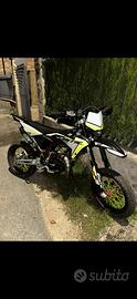 MODIFICHE : motore 75 top viola che ha una bella accelerazione ma è anche molto affidabile ancora in rodaggio solo un pieno fatto, marmitta Katrace completa calcolata per 75, pacco lamellare malossi vl 17, frizione rinforzata top con molle 110 kg, pignone da 13, porta targa pieghevole dev&craft, frecce micro led e cannucce sui raggi. NO PERDITEMPO.