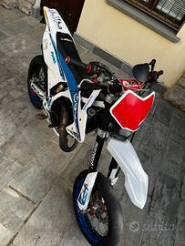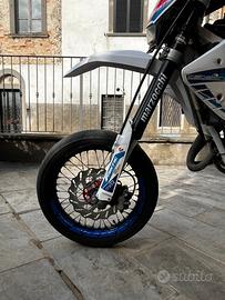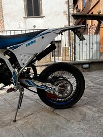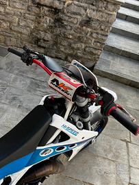 moto sempre usata per spostamenti in paese sono state fatte piccole modifiche per renderla leggermente piu veloce e affidabile. la moto monta i seguenti pezzi: cilindro dr 70cc albero TOP spalle piene collettore TOP 360 regolabile pacco lamellare TOP petali in carbonio carburatore 20 mikuni filtro a cono frizione polini scarico drp calcolata per 50cc/70cc terminale katrace 70cc cerchi motard excel bicolore blu/neri tendi catena stampa 3d rosso tappi camera d’aria in ergal rosso pedaline rosse manubrio ergal rossi manopole domino rosse frecce led portatarga pieghevole gt lab leva aria carbutaore su manubrio gomma posteriore 90% gomme anteriore 60% cedo tutti i pezzi originali per qualsiasi informazione non esitate a scrivermi