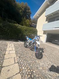La moto monta grafiche personalizzate, inoltre è minuta di numerosi pezzi in ergal.