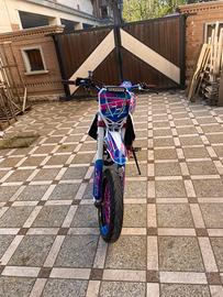 la moto e in ottime condizioni con cuscinetti appena cambiati , monta un motore 94cc , come marmitta gianelli , guidabile con la patente AM ,