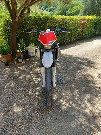 Vendo per passaggio a cilindrata superiore la moto monta: albero top spalle rinforzate frizione malossi drp completa per 70 manubrio voca blu gomme praticamente nuove 90% pasticche nuove La moto é omologata sia enduro che motard e per due persone. Insieme alla moto cedo anche un altro kit di plastiche, una sella, carburatore 21 dell’orto e i cerchi motard con disco e corona. Revisione valida fino a maggio 2027 Prezzo poco trattabile Per maggiori informazioni contattare su whatsapp 3662613300