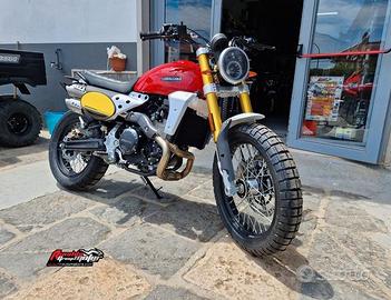 Fantic CABALLERO 500 Scrambler La Fantic Caballero Scrambler 500 è dedicata ai grandi sognatori, affascinati dall'idea di rivivere l'ebrezza degli mitici anni '70 in sella ad un'icona senza tempo. Motore:Monocilindrico 4 tempi, raffreddato a liquido Cilindrata:449 cc Pot. Max. rilevata*:40 CV a 7500 rpm Coppia Max. rilevata*:43 Nm @ 6000 rpm Alesaggio:94.5 mm Corsa:64 mm Distribuzione:Monoalbero a 4 valvole Alimentazione:Iniezione elettronica - corpo farfallato ø 40mm Avviamento:Elettrico Marce:6 Frizione:Multidisco in bagno d'olio Impianto di scarico:Doppio scarico Arrow Consumi:4,2 l/100 km Emissioni CO2:97 g/km Lunghezza:2080mm Altezza sella:820 mm Interasse:1425mm Peso:150 kg a secco Serbatoio:capacità 12 l Siamo una concessionaria specializzata nella vendita di moto, quad, moto d'acqua, scooter, minicar, minimoto, moto da cross, auto, accessori e abbigliamento dedicato.Contattateci per visionare i veicoli disponibili presso le nostre sedi: Pietramontecorvino (Fg), Termoli (Cb).o Possibilità di consegna in tutta Italia.o Assicurazione e disbrigo pratiche di voltura e immatricolazione direttamente in sede.o Possibilità di finanziamento anche senza anticipo.o Ritiro usato con super valutazione e incentivo rottamazione.o Permute con auto, moto, quad, pit bike, moto d'acqua, bici, ecc.o Extra sconto su abbigliamento e accessori riservato a tutti i clienti che acquistano una moto presso il nostro showroom.I contenuti degli annunci necessitano di conferma telefonica al numero: in quanto suscettibili di errore, pertanto non hanno validità contrattuale.Tutte le nostre offerte di moto nuove e usate sono disponibili sul nostro sito: RINALDOMOTORS Per le info e offerte sull'abbigliamento dedicato visitate il sito: STORE.RINALDOMOTORS Per info: -