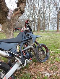 La moto è più reattiva rispetto a un 50 originale, ha una ripresa migliore ed è semplice e sicura da guidare. Monta scarico Giannelli ma fornisco anche lo scarico originale oltre al miscelatore se si volesse rimontare,parafango TM Racing incluso.Inoltre fornisco tutti i pezzi originali più paramani circuit carbon look e altro ancora.
