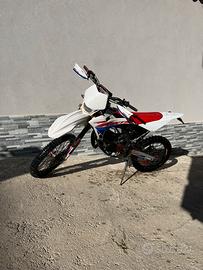 fantic enduro 50 maggiorato 85 monta: dr 70 maggiorato 51 diametro 85 cc scarico completo gianneli full carbon carburatore 21 lavorato travasi lavorati carter lavorati squish alla testata 0.5 albero top piastre sospensioni dorate porta targa pieghevole. venduta con kit di adesivi nuovi se si desidera applicarli. la moto conta poche ore poiché il pistone è stato cambiato da poco. sempre tenuta in maniera perfetta e controllata periodicamente. prezzo poco trattabile.
