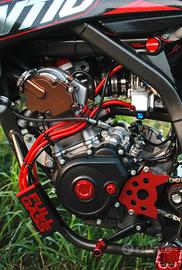 Vendo fantastico Fantic (originariamente 125cc quindi giudabile da 16 anni) rifatto completamente nei minimi dettagli. - MOTORE : - Cilindro uma racing 65mm - Albero Sck corsa 68mm - Cuscinetti Nuovi - Testata uma racing 22/25mm - coperchio testata rosso - collettore aspirazione uma racing - albero a camme Uma racing - bobina accensione Uma racing - frizione 5 molle fasstek - candela uma racing 3 elettrodi - catena di distribuzione rinforzata - pattini lunghi - ruota libera rinforzata - motorino di avviamento maggiorato - carburatore NLK PWK 36 - pompa acqua fasstek maggiorata ricavata dal pieno cnc - pompa olio maggiorata - scarico scalvini completo con fondello in carbonio - filtro in spugna ramair - carter frizone fass tek tasparente - supporti motore rinforzati (telaio) *Appena eseguito controllo pistone (tolleranza pistone-cilindro) esito perfetto e sostituite le guarnizioni. 70H Motore - IMPIANTO FRENANTE ANTERIORE - Disco personalizzato 320mm EG Brakes flottante - Pinza Brembo p4 34/34 con pastiglie accossato - Pompa Brembo radiale derivazione TM - ESTETICA: - Grafiche personalizzate glitter + dettagli cromati by Mi race graphics - prafango ant yz - cerchi bi-color - angel eye RBG effetto carbonio - tutto catalogo septar (leve, tappi, pedane, ecc…) - portatarga gt lab, frecce micro led, stop nero - coprisella wd racing - para calore collettore scarico in carbonio - ALTRO: - FORCELLE ANT. tarate motard - GOMME pirelli diablo rosso 3 - rapporti 14/54 con catena rinforzata (serie oro) - batteria unibat lithium extra - comando gas domino - sensore temperatura liquido refrigerante (con schermo dedicato) - recupero fluidi personalizzato by 3d motolab - specchietti bassi a manubrio omologati - pedaline passeggero nere … moltissimi altri dettagli Prima della vendita effettuo tagliando completo e i vari controlli generali. Cedo tutti i pezzi originali. Per info contattatemi