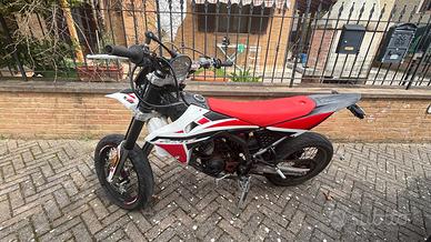 Questa Fantic Motard 50 è perfetta per chi cerca una prima moto divertente, sportiva e con un look da vera racing. Il design bianco-rosso è aggressivo e moderno, non passa inosservato e richiama le moto da competizione. Leggera e maneggevole, è ideale sia per la città che per divertirsi tra le curve. Monta un motore 50cc 2 tempi, brillante e reattivo, con cambio a 6 marce che rende la guida dinamica e coinvolgente. Presente il miscelatore automatico, quindi niente miscela da fare a mano: sali e parti. Dal punto di vista tecnico offre: • Forcella anteriore a steli rovesciati, per maggiore stabilità • Freni a disco (tipo wave), potenti e sicuri • Cerchi da 17” con gomme stradali, perfetti per il grip su asfalto • Peso contenuto, facile da guidare anche per chi inizia La moto si presenta in buone condizioni generali, con normali segni d’uso ma pronta all’utilizzo. Monta anche un portatarga sportivo che le dà un tocco ancora più cattivo.