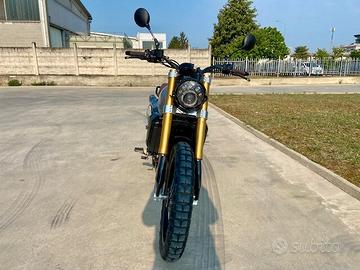 Vendesi splendida Fantic Caballero Scrambler Deluxe, immatricolata nel 2021. La moto ha avuto due proprietari ed è in condizioni eccellenti, pronta all'uso. La versione Deluxe si distingue per l'elegante colorazione grigio opaco, il manubrio con traversino e la sella marrone dedicata. Il contachilometri segna 18.528 km. La moto è arricchita da diversi dettagli di pregio: Scarico Arrow doppio (di serie). Componentistica in fibra di carbonio (fianchetti). Termometro temperatura olio/acqua Koso sul manubrio. Borsello da serbatoio originale Fantic e griglia para-faro. Caratteristiche Tecniche Principali: Motore: Monocilindrico 4 tempi, 449 cc (Euro 5). Potenza: 40 CV (29,5 kW) - Guidabile con patente A2. Impianto frenante: ByBre (Brembo) con ABS Continental disinseribile. Condizioni di Vendita: Prezzo: € 4.500 (voltura esclusa). Garanzia: 12 mesi inclusi. Finanziamenti: Possibilità di finanziamento personalizzato in sede. Spedizioni: In tutta Italia tramite corriere specializzato nel trasporto motocicli al costo di € 350. CHI SIAMO E CONTATTI Ci trovate presso:Mercandelli - Concessionaria Ufficiale YamahaIndirizzo: Via Achille Grandi 22, Casale Monferrato (AL) I nostri orari di apertura: Lunedì: Chiuso / 15:00 - 19:00 Dal Martedì al Venerdì: 09:00 - 12:30 / 14:00 - 18:30 Sabato: 09:00 - 12:30 / 14:00 - 18:30 Domenica: Chiuso Per informazioni e appuntamenti: Cellulare/WhatsApp: