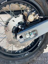 Ruote a raggi con cerchi in alluminio con pneumatici Pirelli Scorpion Rally STR all'anteriore monta 90/90 R-21 e al posteriore 140/80 R-17.