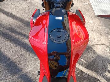 - Airbox in posizione frontale e scarico caratterizzato da una camera di espansione sotto la moto e un silenziatore Racing a passaggio alto