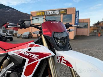 La nuova Fantic XE 125 MY25 è la degna erede di una moto che ha dominato il mondiale Youth dal 2021. Più performante, più ergonomica, più racing: se vuoi vincere, è lei quella giusta. Motore 125cc 2T compatto ma grintoso, ora ancora più affidabile grazie al nuovo sistema di raffreddamento che migliora del 35% la dissipazione del calore. Prestazioni costanti anche nelle condizioni più toste. Due mappature di serie: "Hard" per la massima spinta, "Soft" per una risposta più gestibile, ideale quando sei stanco o il terreno è impegnativo. Nuova ergonomia e design sviluppati con i team ufficiali per garantire comfort e libertà di movimento totali. Scarico Arrow: bello da vedere, ma soprattutto potente. Esalta gli alti regimi senza perdere fluidità e controllo. Manutenzione smart: cambio filtro TwinAir in 15 secondi e senza attrezzi. Meno tempo ai box, più tempo a gas spalancato. Telaio full alluminio, leggero ma rigidissimo, per una guida precisa e reattiva al massimo livello.