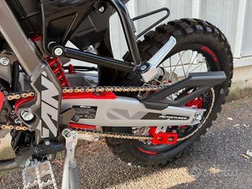 L'accensione elettronica e la valvola a scarico a controllo elettronico assicurano un'erogazione fluida ma decisa, perfetta per imparare il ritmo dell'enduro. Lo scarico completa il pacchetto tecnico con grinta e carattere. È una moto che ti permette di crescere, migliorare e divertirti, sempre con il massimo controllo.