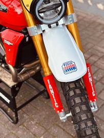Fantic RC2 500 Serie limitata Fantic Heritage Motobox. Creata sulla base della mitica Fantic RC 125 del 1976. Loghi, colori e forme sono tutti originali. Moto unica nel suo genere e appunto creata in serie limitata. MOTO NUOVA NO km 0 DISPONIBILE IN PRONTA CONSEGNA La moto di partenza è una Fantic Caballero 500 versione Rally 2024, quindi già con cruscotto, faro e frecce nuove. Motore monocilindrico Euro 5. La moto, come da foto, è stata equipaggiata con il nostro kit estetico RC2. Come accessori già in dotazione monta paramani acerbis vintage, porta targa corto creato appositamente per la Caballero, paracoppa in alluminio e griglia radiatore. Moto visibile presso nostra sede in Largo Salvo d'Acquisto 1, Bussolengo VR