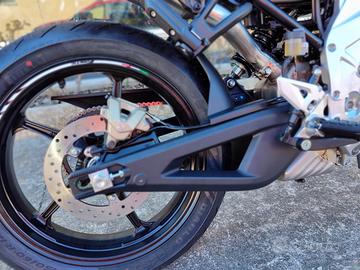 Ha un telaio innovativo per prestazioni senza compromessi. Prima volta nella categoria 125cc che viene introdotto un telaio misto, una vera rivoluzione. Combina una struttura in acciaio a traliccio con una piastra in alluminio forgiato, offrendo stabilità e leggerezza.