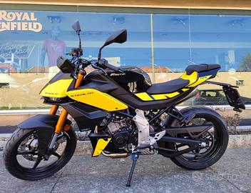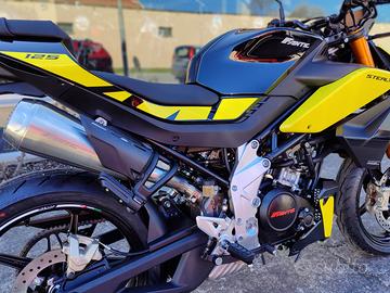 Stealth è caratterizzata da un design essenziale e privo di carenature. Pulita e aggressiva ha una posizione guida più eretta, comoda per la strada e la guida urban, pur mantenendo delle elevate doti di sportività. Omologata E5 , monta il sofisticato motore Minarelli 125cc 4 tempi a iniezione elettronica. E' dotato di sistema EFI, frizione antisaltellamento e Variable Valve Actuation (VVA). Il sistema VVA, grazie a un attuatore, ottimizza la fasatura variabile per ottimizzare la miglior curva di coppia e potenza. La Stealth 125 è equipaggiata con un display TFT da 5 pollici, fari Full Led.