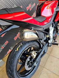 Il sistema di scarico completo è realizzato in acciaio inox spazzolato e presenta il silenziatore posizionato in alto, un dettaglio che richiama chiaramente lo stile e l'ispirazione del mondo delle corse.