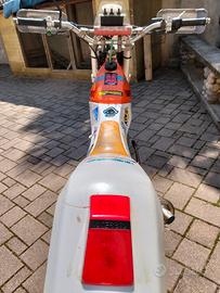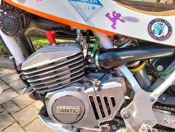 Vendo Fantic Trial 50 serie 7 in ottime condizioni e perfettamente funzionante. Alla moto sono stati eseguiti i seguenti lavori: -motore rifatto completamente (sostituito tutti i cuscinetti, paraoli, guarnizioni, molla e ingranaggio messa in moto, biella, segmenti + lucidatura cilindro); -gomma posteriore Pirelli 80% anteriore Vee Rubber 60%; -fanale posteriore acerbis nuovo; -sostituito catena, corona e pignone; -sostituito cuscinetti ruote ant. e post.; -sostituito vaschetta fluido freni posteriore, pastiglie ant. e post., manicotto in gomma e relative guarnizioni del carburatore. Alla moto sono stati costruiti due paramani in alluminio su richiesta rimovibili. Dopo questi lavori la moto è stata utilizzata per spostamenti e brevi scampagnate utilizzando sempre miscela con olio sintetico al 3%. Vendo causa inutilizzo, la moto è ferma da un anno ma va regolarmente in moto. Richiesta €1500, visibile in provincia di Cuneo. Per maggiori informazioni non esitate a contattarmi. Matteo