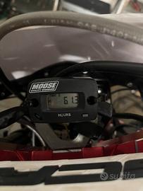 La moto è stata utilizzata per uscite domenicali nel bosco e sono sempre stati effettuati i tagliandi regolarmente (ogni 10 ore). Insieme alla moto vendo compresi nel prezzo le plastiche originali, v face originale e due parafanghi anteriori bianchi.