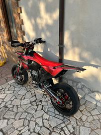 Vendo per passaggio a cilindrata superiore. La moto è stata utilizzata solo ad uso motard e non ha neanche 200h, cambio olio ogni 10/15h e pistone ogni 70h adesso ha cilindro e pistone nuovi. Monta circa 2000€ di powerparts tra carbonio titanio ed ergal. Il prezzo della moto come da foto è di 10500€ In configurazione enduro 7500€ Prezzo trattabile.